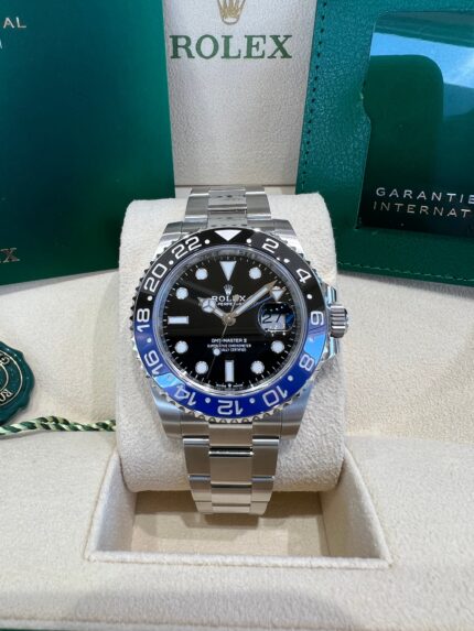 Bezel: Bidirectional red and blue ceramic bezel with 24-hour graduation. Inner engraved Rolex bezel ring