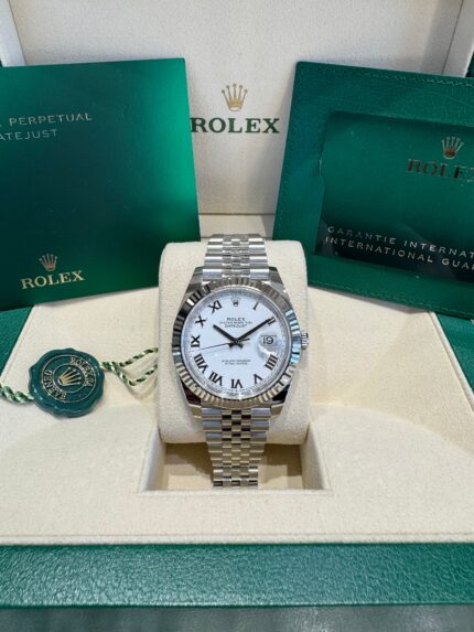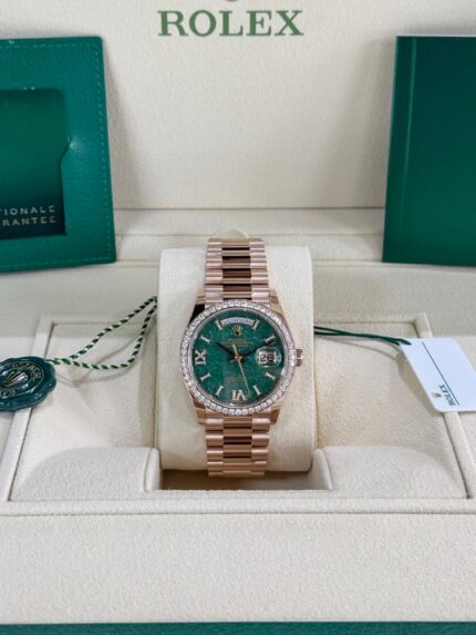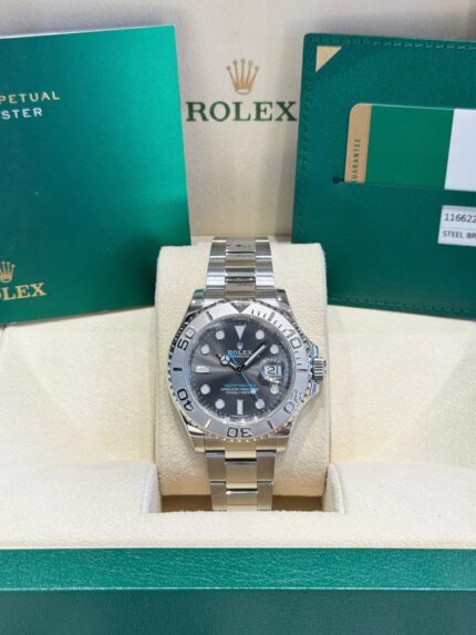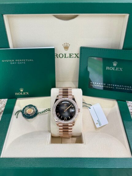 Case: 18ct white gold 40mm in diameter. Rolex logo on crown