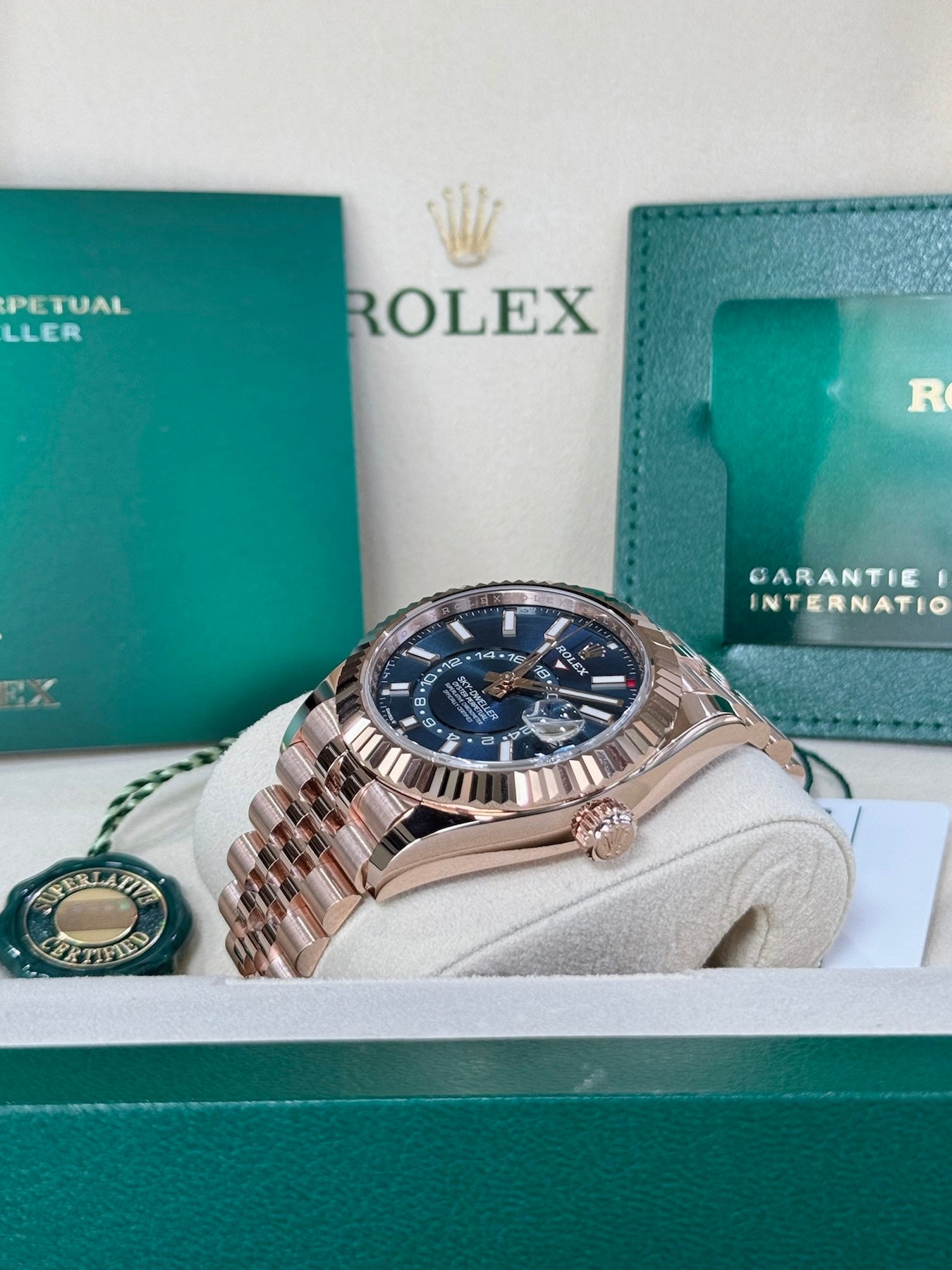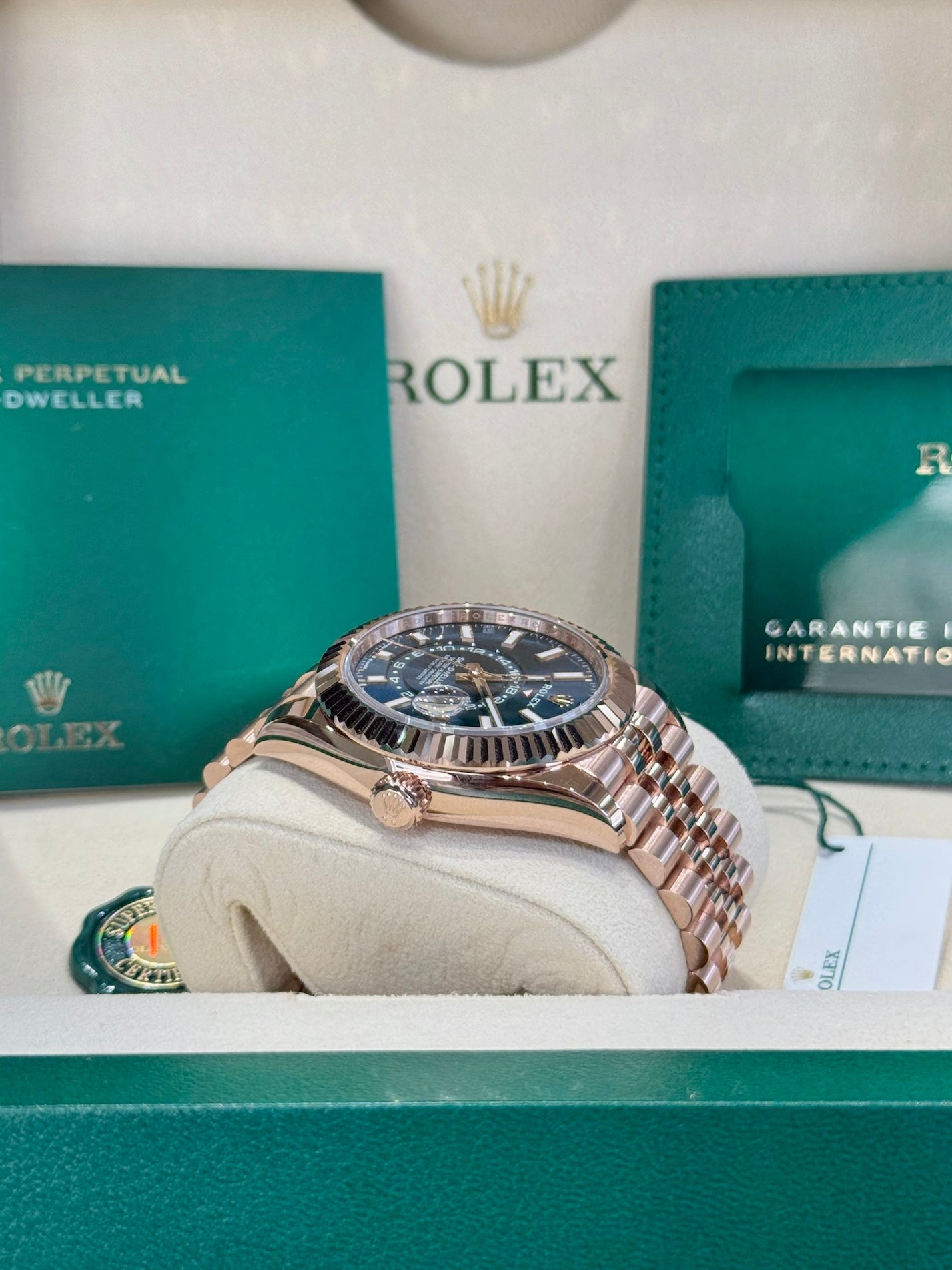 Case: 18ct Everose gold 42mm in diameter. Rolex logo on crown